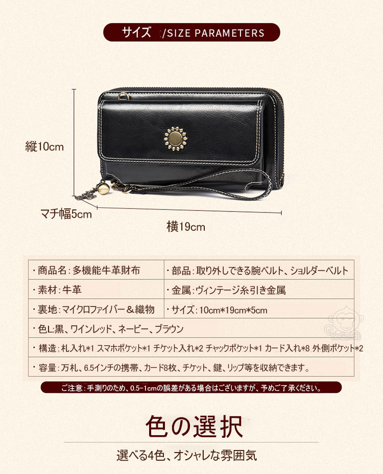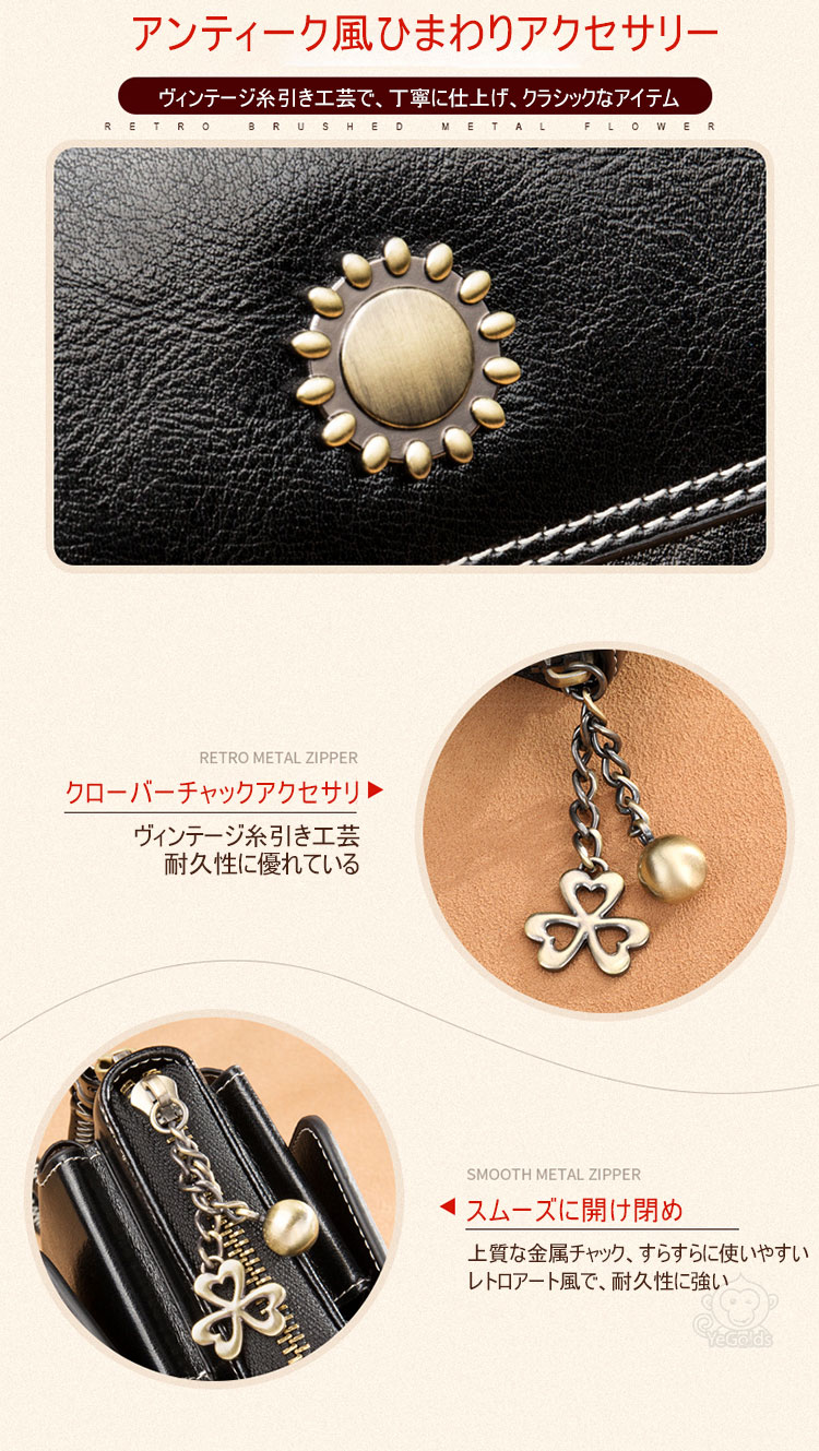 多機能牛革財布 色艶が良い・本革で上品な仕上がり・耐久性に強い・魅力的 ヴィンテージ糸引き工芸で、丁寧に仕上げ、クラシックなアイテム