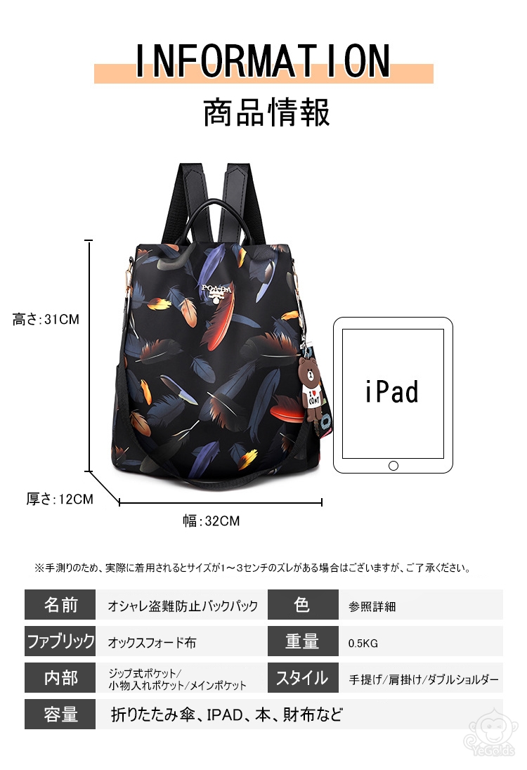 オシャレ盗難防止バックパック