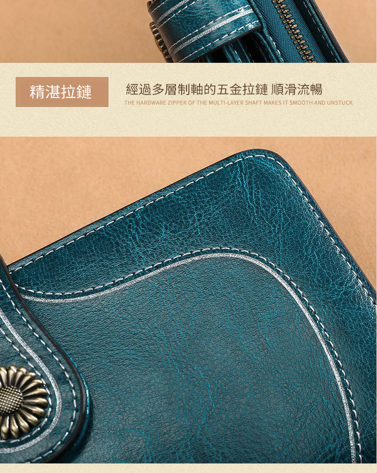財布はたくさん入れられるので気に入った。きれいな色で、革も上品な感じ。