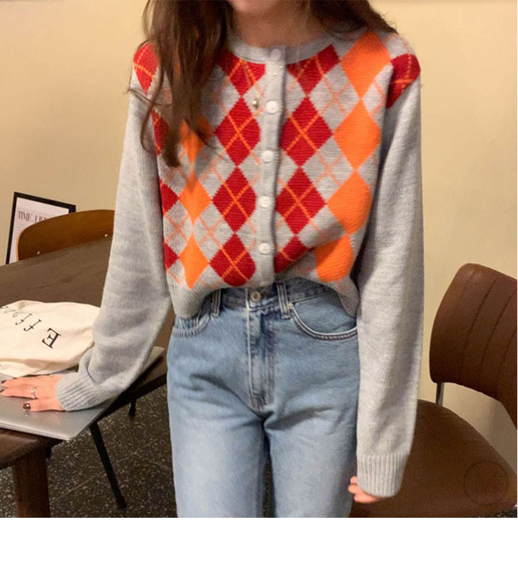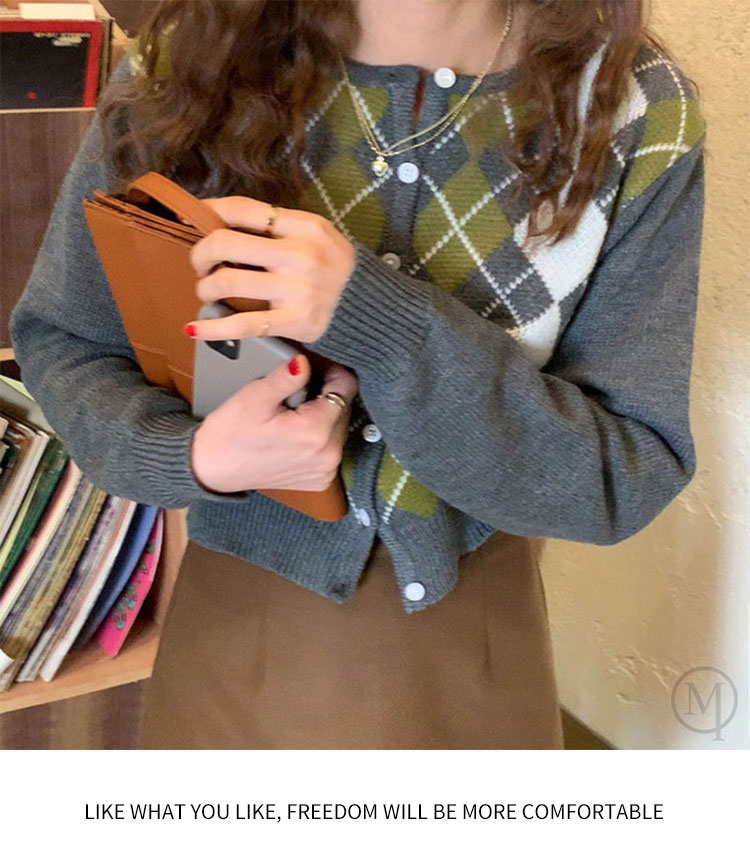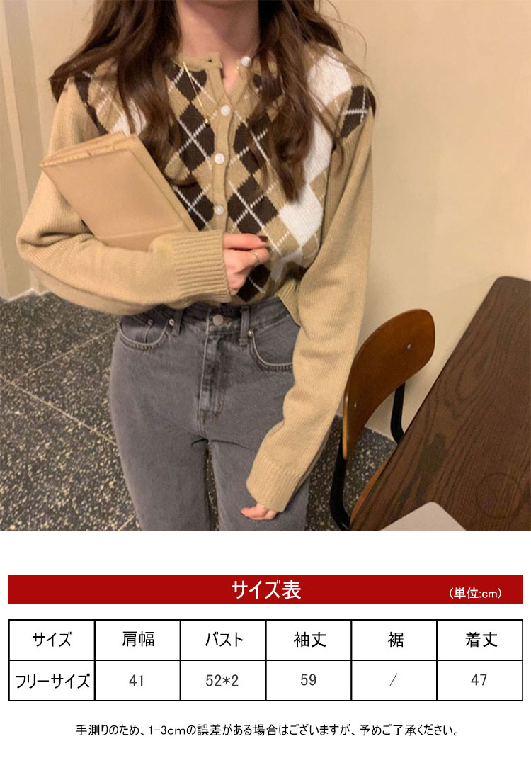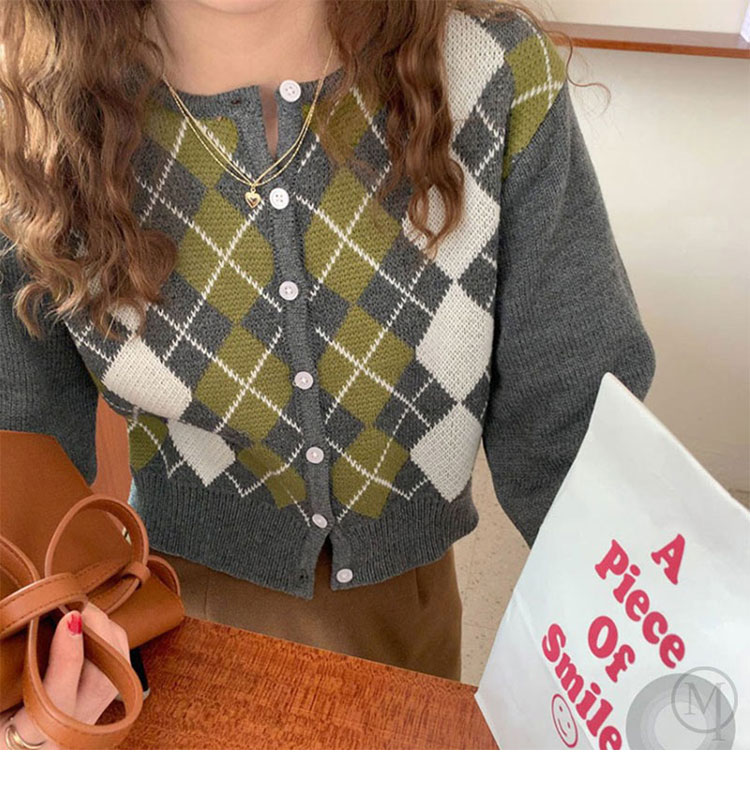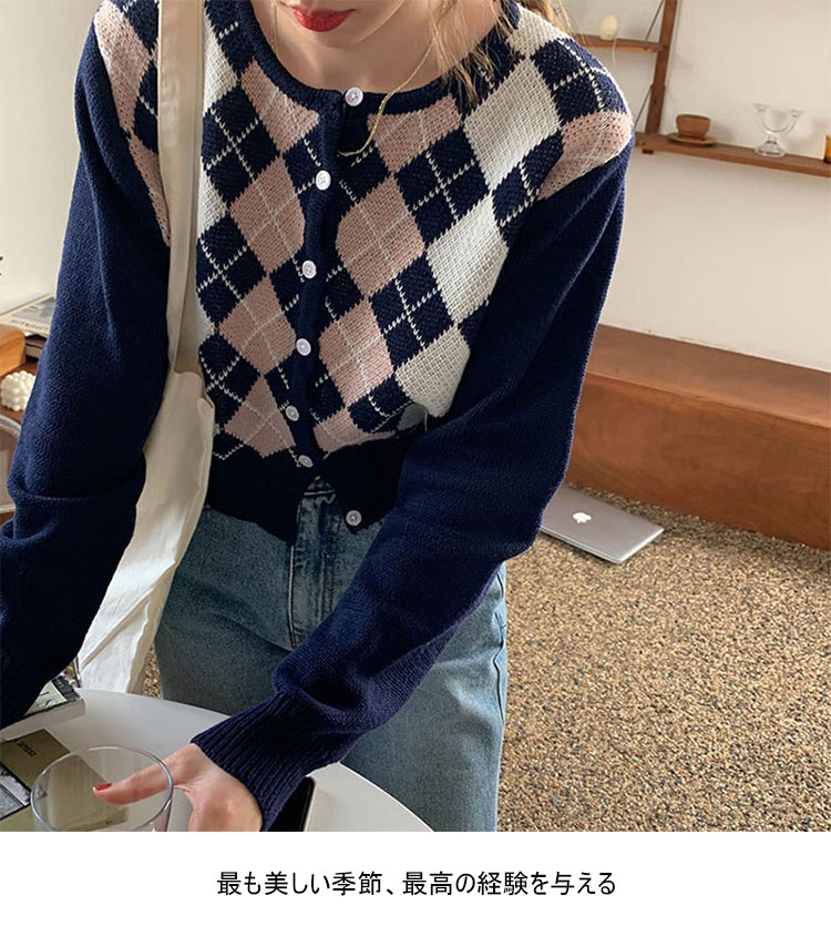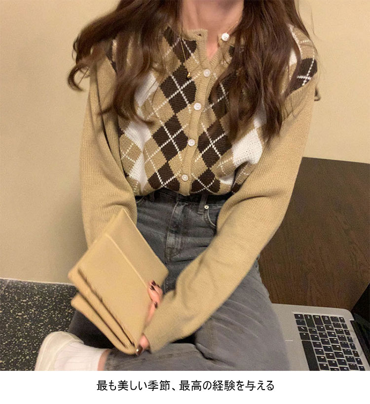 コントラストダイヤモンド長袖カーディガン